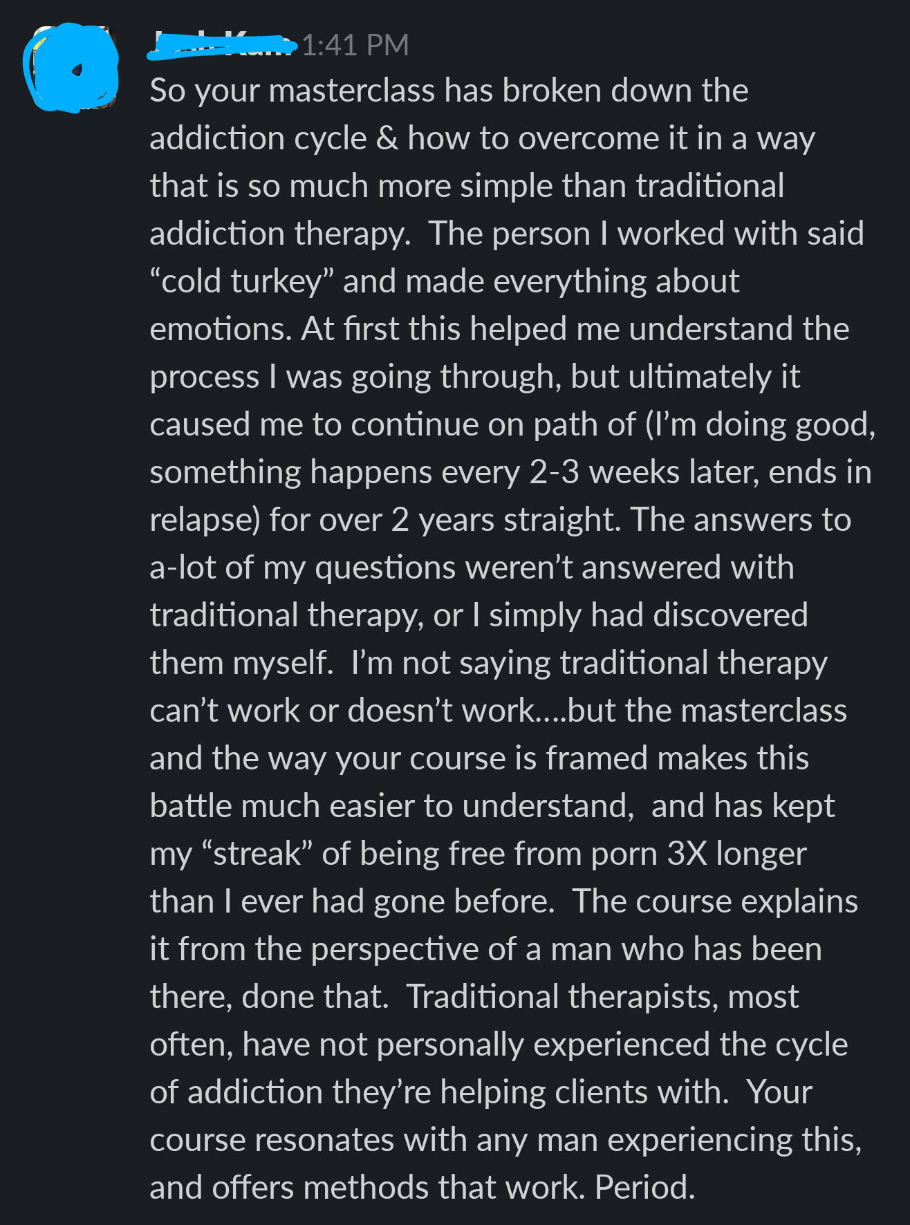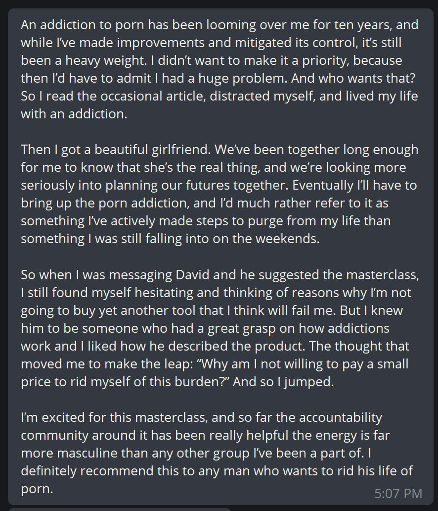The men who get the masterclass AND join The PAAC are seeing phenomenal results with quitting porn.