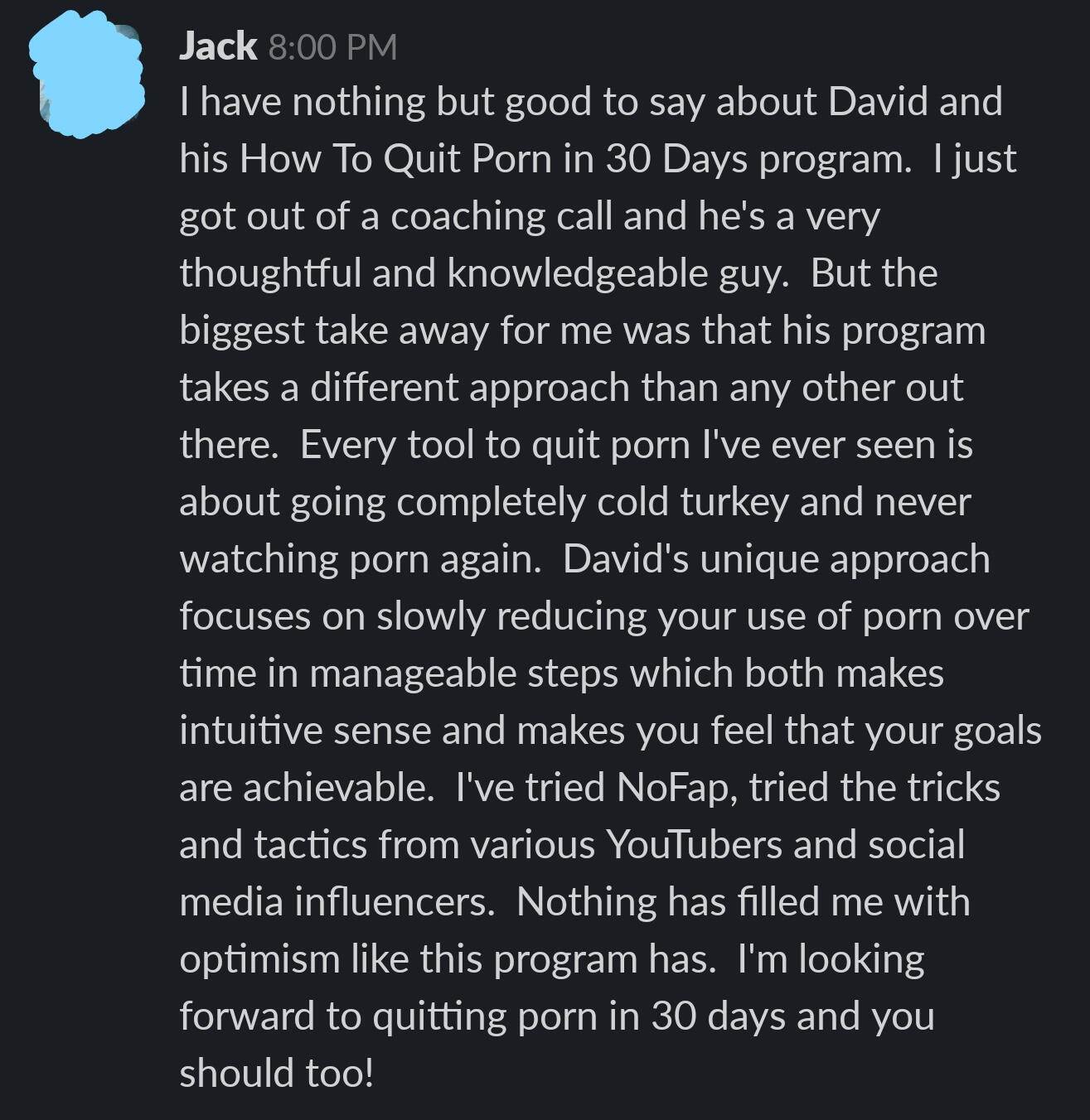 How To Quit Porn in 30 Days and Never Relapse Again gives you an instantly-actionable Quit-Porn-Process that eliminates withdrawals, cravings, and relapse.