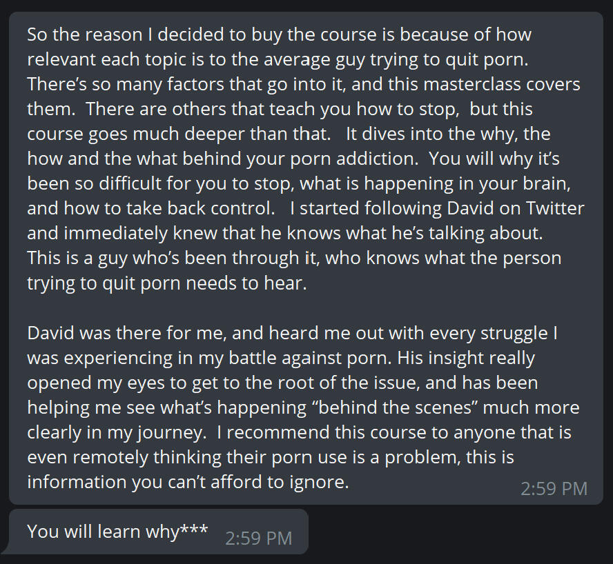 This Quit Porn Masterclass gives you the tools you need to fight addiction mentally and emotionally.